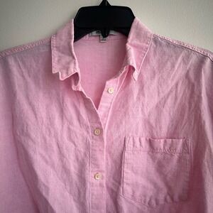 Madewell Short Sleeve Tie Front Pink Paris Linen Button Down Top