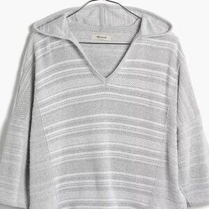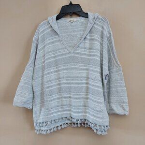 A warm-weather-friendly hoodie with bracelet-baring sleeves and cool fringe detail. In easy stripes, this is a perfect outdoor or indoor concert option, if you ask us.Boxy fit. Cotton +Poly.Machine wash.