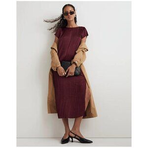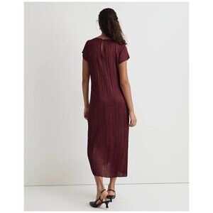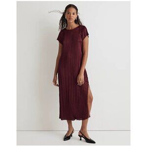 Madewell Short-Sleeve Slip Midi Dress in Plisse Mulberry Wine Size XXS