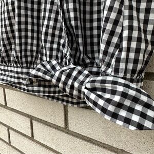Short-sleeved. Cropped at just the right spot to pair with high-rise jeans, this borrowed-from-the-'70s gingham top ties at the side for a wrap vibe. Slightly cropped fit. Cotton. Size S. Excellent used condition. Center snap is slight loose.