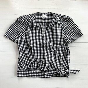 Madewell Short-Sleeve Wrap Top in Gingham Check S