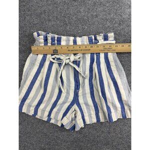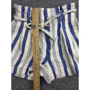 Madewell Shorts Womens 0 Blue White Striped Paperbag High Rise Linen Blend Tie