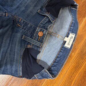 Low cut belly, full coverage in the back. Stretch denim. Side button, adjustable