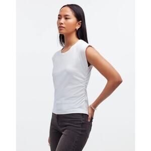Add an effortless twist to your everyday look with the Madewell Side-Cinch Muscle Tee, crafted from soft jersey knit in a crisp white hue. The adjustable side-cinch detail creates a flattering fit, while the sleeveless design keeps it cool and versatile for layering or wearing solo.