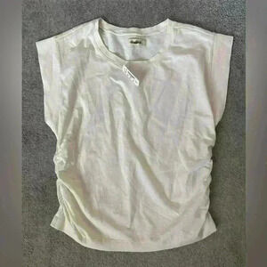 NWT. Madewell side-cinch tee. Lighthouse is the color, it’s a cream color. Makeup mark on the front near the collar (see last photo). Size Small.