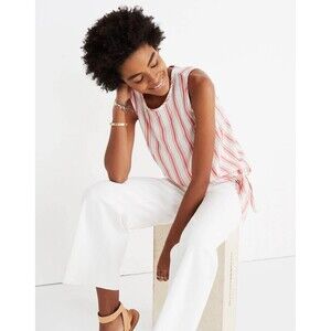 Madewell Side-Tie Tank Marcia Stripe J1128 Size Large 100% Cotton Beachy Light