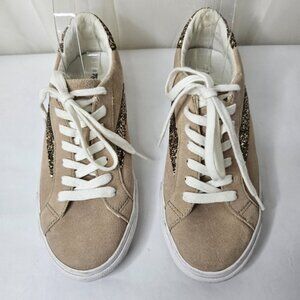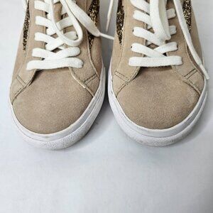 Madewell Sidewal Low-Top Sneaker Beige Suede Leather With Glitter Accent Size 8