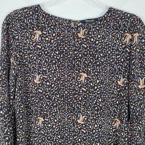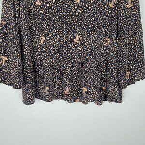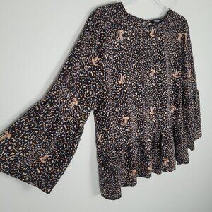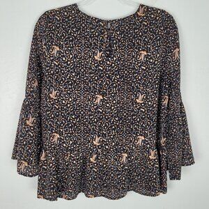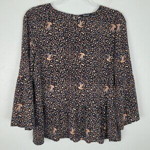 Madewell Silk Blouse 3/4 Bell Sleeve Peplum Patterned Black Multicolor Size L