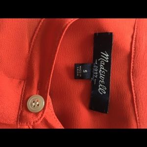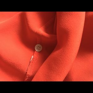 Very pretty coral silk button down blouse. Sheer on the upper front part of the chest. 3/4 sleeve. Gently worn, dry cleaned. True to size. 100 % Silk.