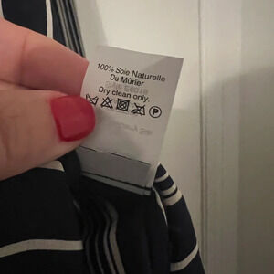 Madewell Silk Blouse Size Medium Blue & White Stripe Print Long SZ M (J116)