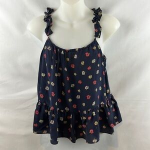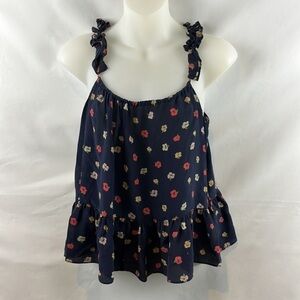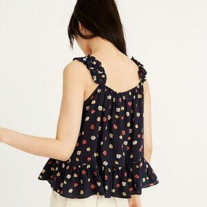 Madewell Silk Blue Flower Ruffle-Strap Cami Top in Confetti Floral Size 4