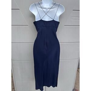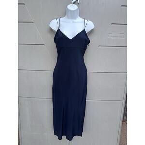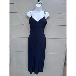 Madewell Silk Cami Slip Midi Dress Navy Open Back Sz 00 Party Cocktail Minimalis