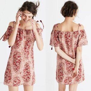Madewell Silk Cold-Shoulder Dress Paisley Print Women's Medium Tie Strap Floral