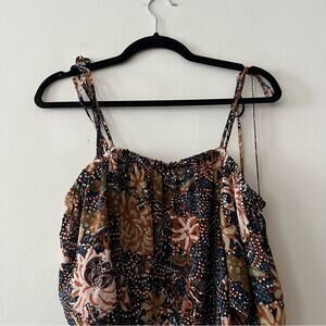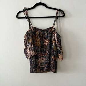 In good preowned condition. "A fluttery off-the-shoulder silk top with swingy tassel-trimmed straps. A pretty addition to your favorite blues in a rich floral print."
