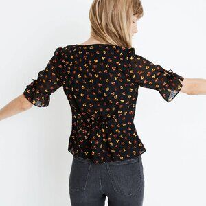 Size 2 Madewell Silk Daylight Top in Feline Floral. Has drawstring sleeves for size adjustment, great condition and super adorable.