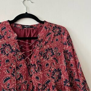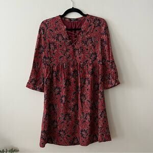 Madewell Silk Lace-Up Dress in Red Assam Floral