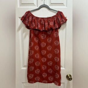 Madewell Silk Off the Shoulder Palm Red Sheath Mini Dress Boho Floral Size XS