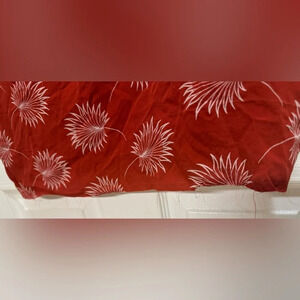 This is a listing for a preowned Madewell Silk Off the Shoulder Palm Red Sheath Mini Dress Women's Size XS. The bottom has some threads hanging, could cut off. Approximate measurements in photos. Please see all photos for details as they are part of the description.