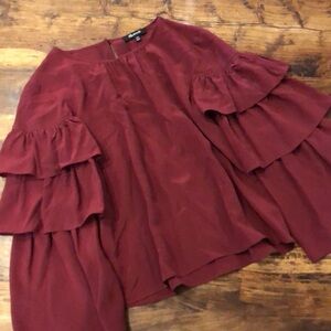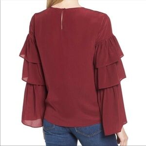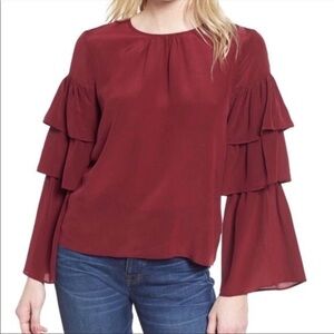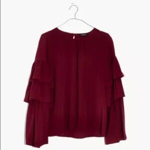 Madewell Silk Ruffle Sleeve Top Burgundy XXS