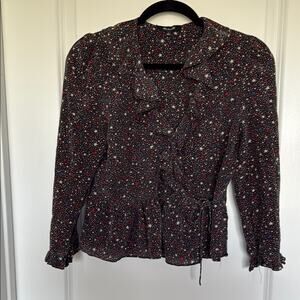 Madewell Silk Ruffle-Hem Wrap Top in Starry Night, S