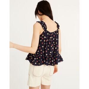 Madewell Silk Ruffle-Strap Cami Top in Confetti Floral Size 10 Navy Blue Floral