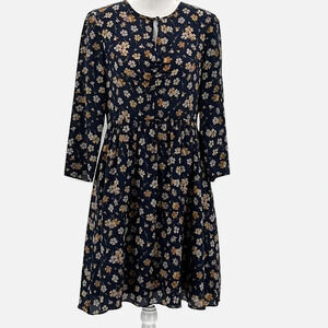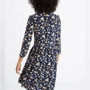 Madewell Silk Shirred Keyhole Dress in Petal Party - Size 2. Excellent pre-owned condition. In luxe 100 percent silk, this retro floral dress with a flirty keyhole and flattering shirring is undeniably pretty. File it away as: a wintery date-night must-have. 3/4 sleeves, hidden back zip with hook & eye closure.