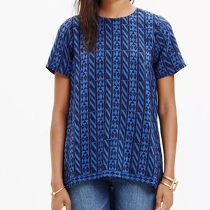Madewell Silk Tailored Tee & Skirt Set in Geometric Stripe Size L/12