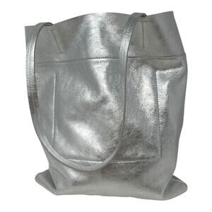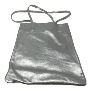 Madewell Silver The Magazine Leather Tote Bag Metallic Shoulder