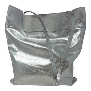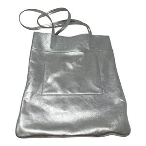 Shine in style with this Madewell The Magazine Tote Bag in metallic silver leather. This sleek, minimalist tote is lightweight yet durable, designed with long shoulder straps, a roomy interior, and an inside slip pocket for easy organization.