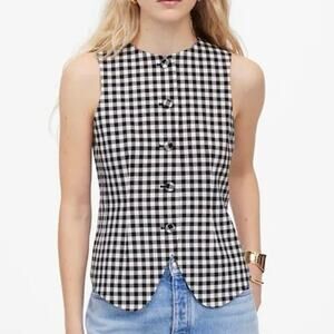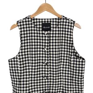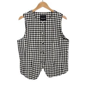 Madewell Single Breasted Crewneck True Black Checkered Plaid Vest Size 14 NWT