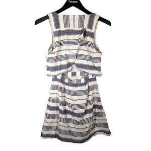 Madewell Size 0 Nautical Preppy Striped LINEN Blend Overlay Dress Open Back