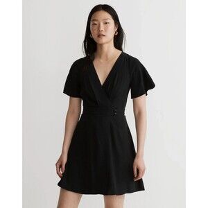 Madewell Size 2 Pleated Waist True Wrap Mini Dress True Black V-Neck Flowy NWT