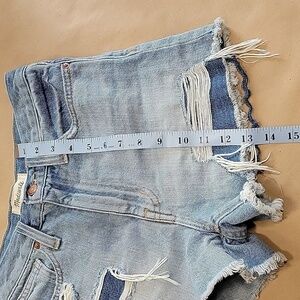 Madewell, Size 24 "The Momjean Short", Light Wash with Med Wash Under Holes. EUC. Factory Distressing, Fading and Whiskering. Classic 5 Pocket Styling with Zipper Fly and Button Closure. Relaxed Fit. Please refer to measurements in photos to ensure proper fit.
