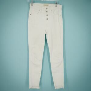 Madewell Size 26 White 10 Inch High Rise Skinny Button Fly Waist Raw Hem Jeans