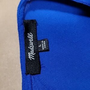 Madewell Size L Electric Royal Blue Lakeshore Button-Back Shift Dress, Sleeveless, GUC. Good Used Condition, No Holes, Rips, Stains or Snags. 2 Spots of Thread Loose at Hem (Shown in closeup) and some pilling inside by materials tag and extra button. Please refer to measurements in photos to ensure proper fit. Shown on size 6 mannequin.