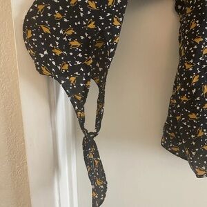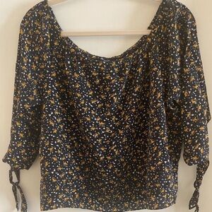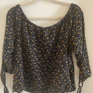Madewell Size M Silk Blouse Off Shoulder 3/4 Sleeve Leaf Print Boho Peasant