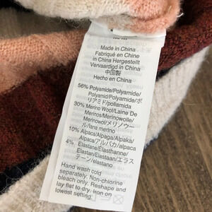 •Details: Soft knit striped sweater with mock turtleneck. Polyamide merino wool alpaca elastase AF507