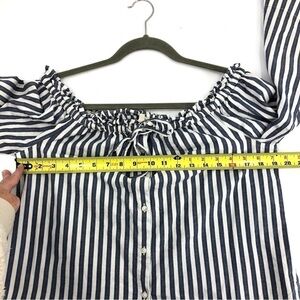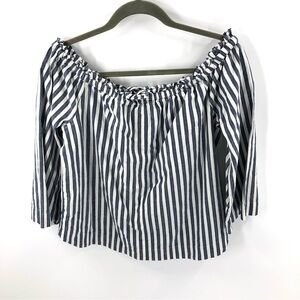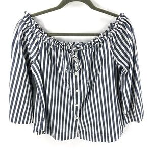 Madewell Size Medium Shimmer Stripe Off Shoulder Top Blue White Shirt Blouse