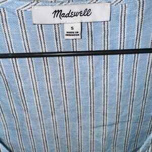 Madewell Size S Cassie Linen Button Front Midi Dress Blue White Striped Pockets