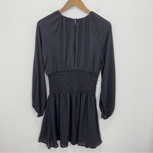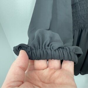 Madewell Size Small Black Bubble-Sleeve Smocked Mini Dress LBD Fall Wedding NWT