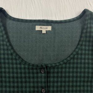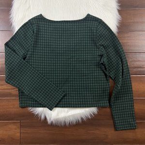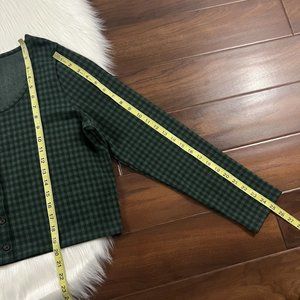 Madewell Women's Size XL Green and Black Gingham Check Jacquard Cropped Cardigan Sweater Jacket, Stretch, Button Front, 90% Cotton 8% Polyester 2% Elastane Used with no noticed flaws Pictures show full details and measurements Thanks for looking :)