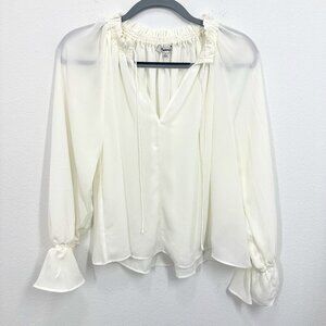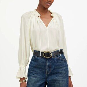 Madewell Size XS Winter White Semi Sheer Tie Front Drapey Flowy Blouse NWT