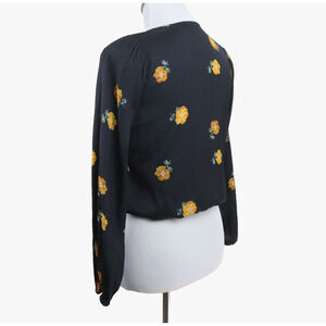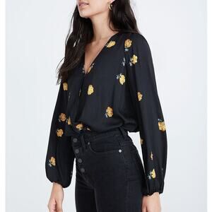 Madewell Size XXS Bubble-Sleeve Wrap Top in Floating Florets Black