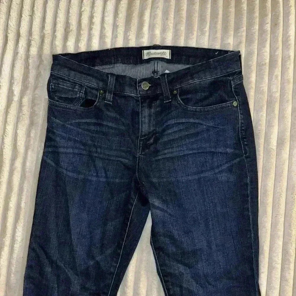 Craft your look with the sleek and versatile Madewell Skinny Skinny Ankle Jeans in a size 29. These denim wonders feature a flattering mid-rise waist and a snug, stretchy fit that moves with you. The classic blue hue is easy to pair with any top, while the dark wash provides a sophisticated edge suitable for various occasions.