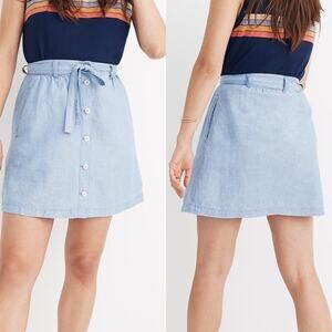 Madewell Skirt Women's 0 Denim Chambray Button Front Linen Mini Lightweight