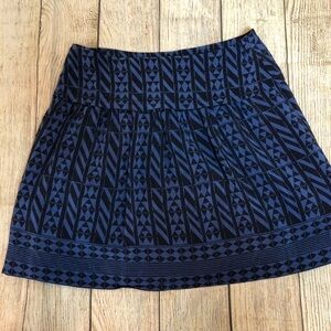 Madewell Skyline mini skirt with blue tonal geometric print. 100% silk. Size 2. Waist approx 13.5”, length approx 16”.