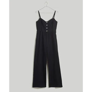 Madewell Sleeveless Wide Leg Jumpsuit 100% Linen Black Pockets Flowy US 12 NWT