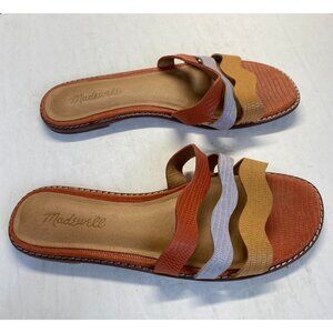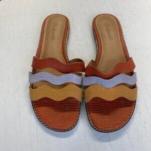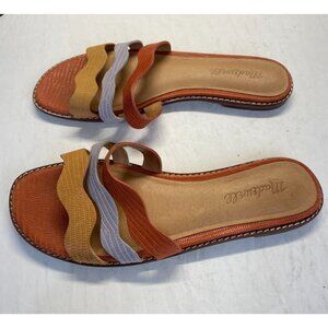 Madewell Slide Flat Sandal Embossed Leather Triple Straps Size 7.5,Comfort