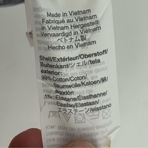 Preowned, like new, no tags, no flaws. High waisted, cropped, wide legs. 99% Cotton, 1% Elastane.