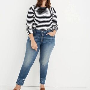 Madewell Slim Straight Distressed Button-Front Edition Jeans In Blue Size 33